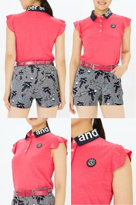夏のゴルフに必要となる様々な機能を兼備した、スイングドライ・エンボスワッフル素材のフリルスリーブポロシャツ