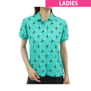 マンシングウェア Munsingwear Sunscreen NIR 70周年記念限定 総柄プリント ストレッチ半袖ポロシャツ レディス